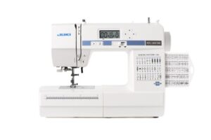 MACCHINA PER CUCIRE ELETTRONICA180 punti, 1 alfabeto, rasafilo, display luminoso, zig zag regolabile fino a 7 mm, lunghezza punto fino a 5 mm, 8 asole in automatico, movimento griffa a box, infila ago, affrancatura automatica inizio/fine cucitura, luce fredda a LED, braccio libero, velocità 900 p/m. Valigia rigida per il trasporto. Crochet rotativo.