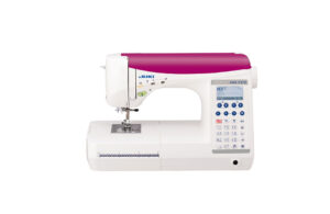 MACCHINA PER CUCIRE ELETTRONICA 155 punti, 3 font alfabeto, touch screen luminoso, zig zag regolabile fino a 7 mm, lunghezza punto fino a 5 mm, 16 asole in automatico, movimento griffa a box, memoria 70 punti, infila ago, affrancatura automatica inizio/fine cucitura, luce fredda a LED, braccio libero, leva per punto dritto, rasafilo. Velocità 900 p/m. Reostato multifunzione. Valigia rigida. Crochet rotativo