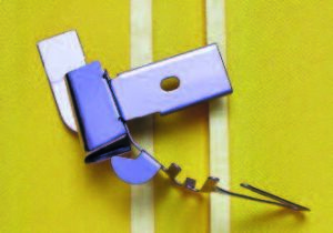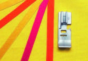 Utilizzabile con piedino per guide, in un solo passaggio questo straordinario accessorio permetterà l’ applicazioni di sbiechi già ripiegati sul tessuto.